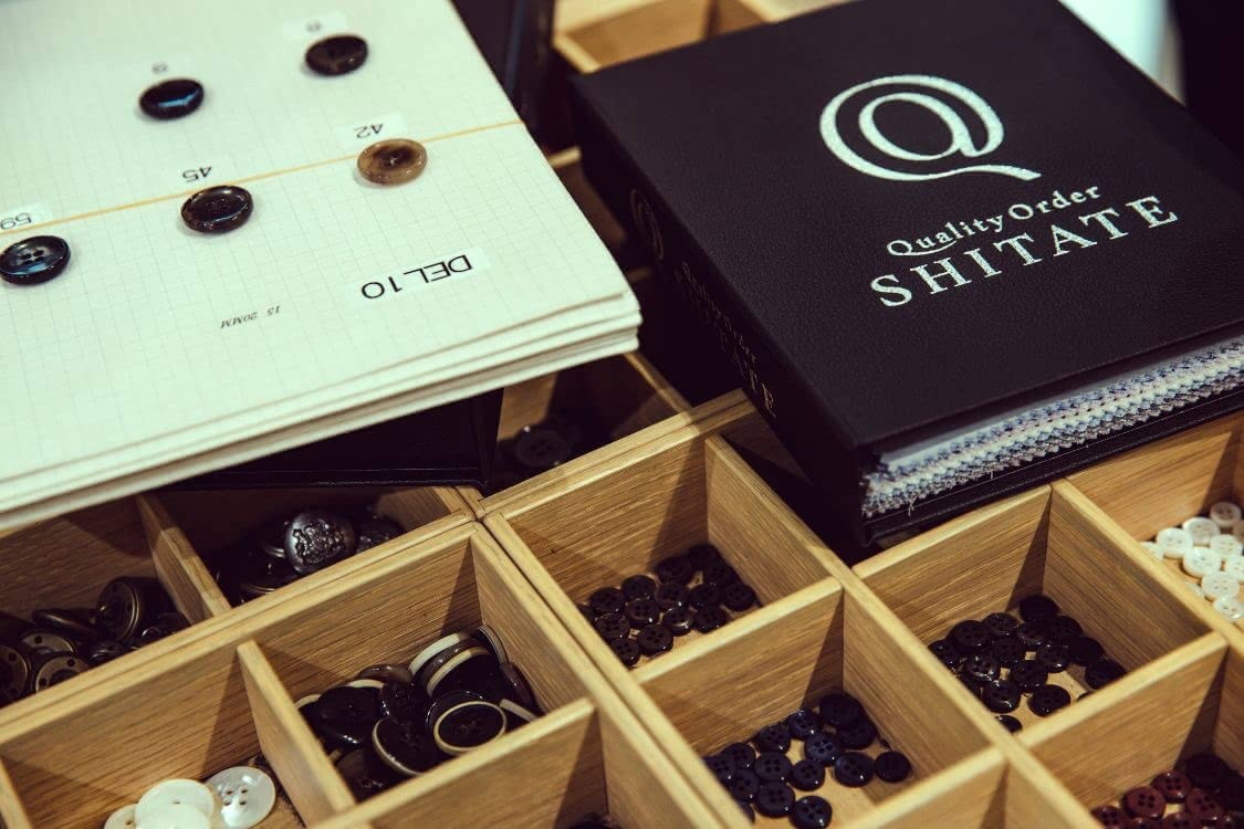 店舗でオーダーする最大の魅力は、なんといっても生地やボタンなどの細かな仕様を実物を見ながら、自分だけのスーツを作る体験です。