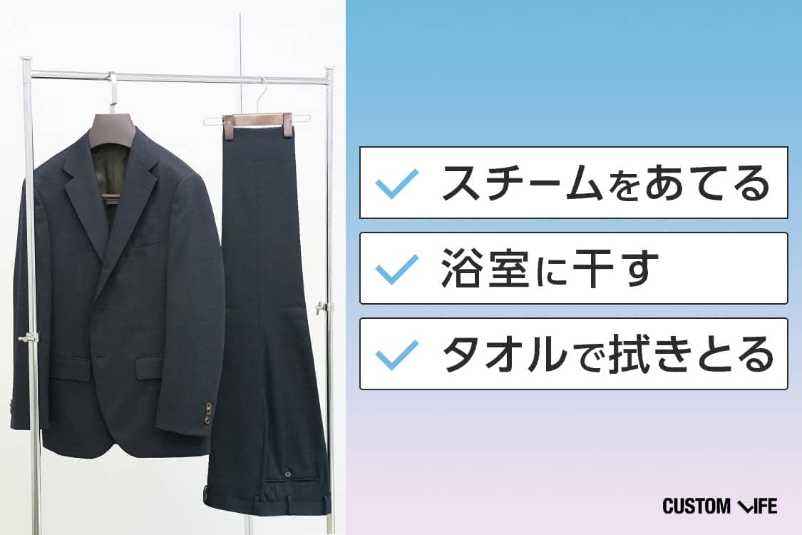 スーツに水分を吸い込ませ蒸発させると、においやシワを取ることができます。