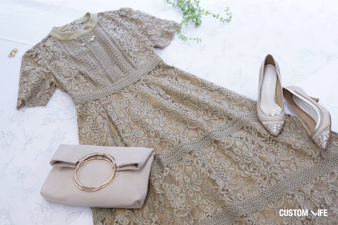 黒いドレスを選ぶ場合は、バッグやアクセサリーなどの小物に華やかな色を取り入れ、暗くなりすぎないようにしましょう。